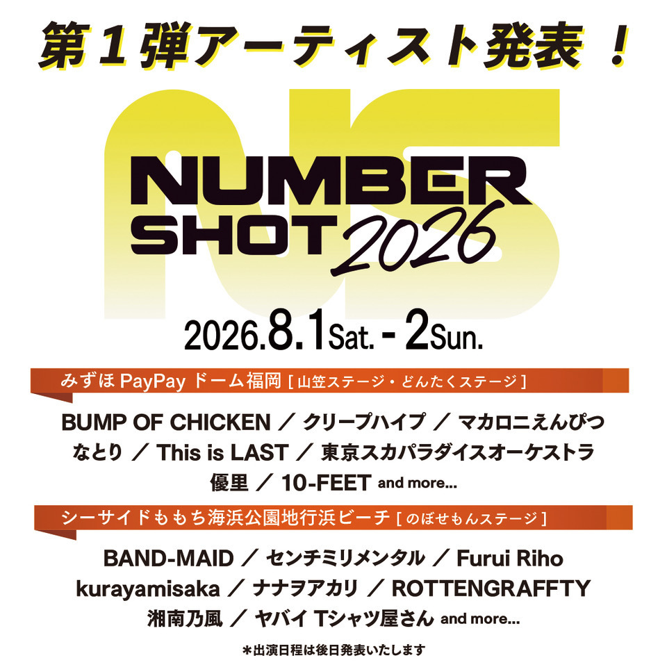 [NEWS / FES] BAND-MAID, 2026/8/1,2開催の"NUMBER SHOT2026"に出演決定! 2026.02.24 INFO NEWS TICKET お給仕 NEW Tweet シェア 2026年8月1日、2日に開催されるフェス "NUMBER SHOT2026"にBAND-MAID出演決定! 出演日などの詳細は後日発表となります。 詳細は下記よりご覧ください。 https://numbershot.jp/2026/